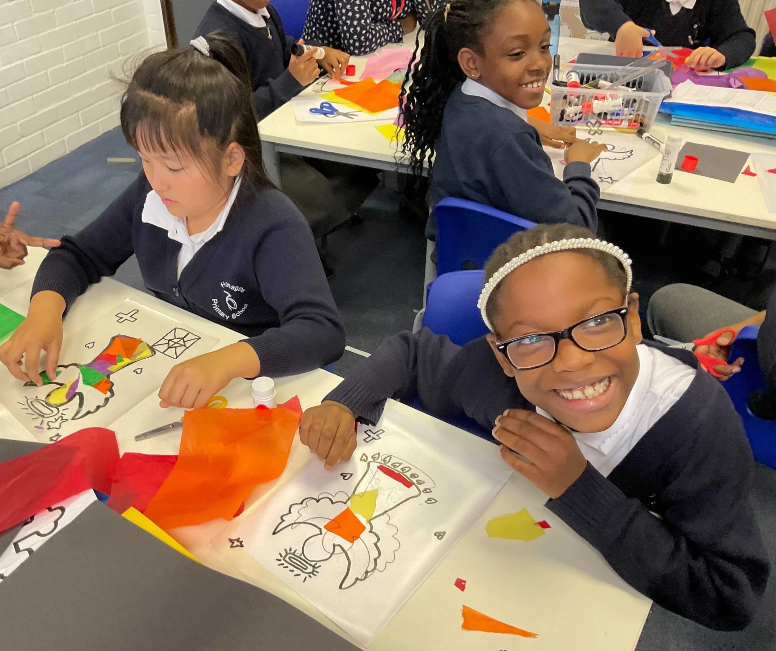 In Year 4, the children have been learning about places of worship. They were able to create some wonderful art work based on stained glass windows and the impact these intricately and specially designed windows can have. They carefully ripped up tissue paper to recreate the effect and thought of bright colour combinations to make theirs stand out.