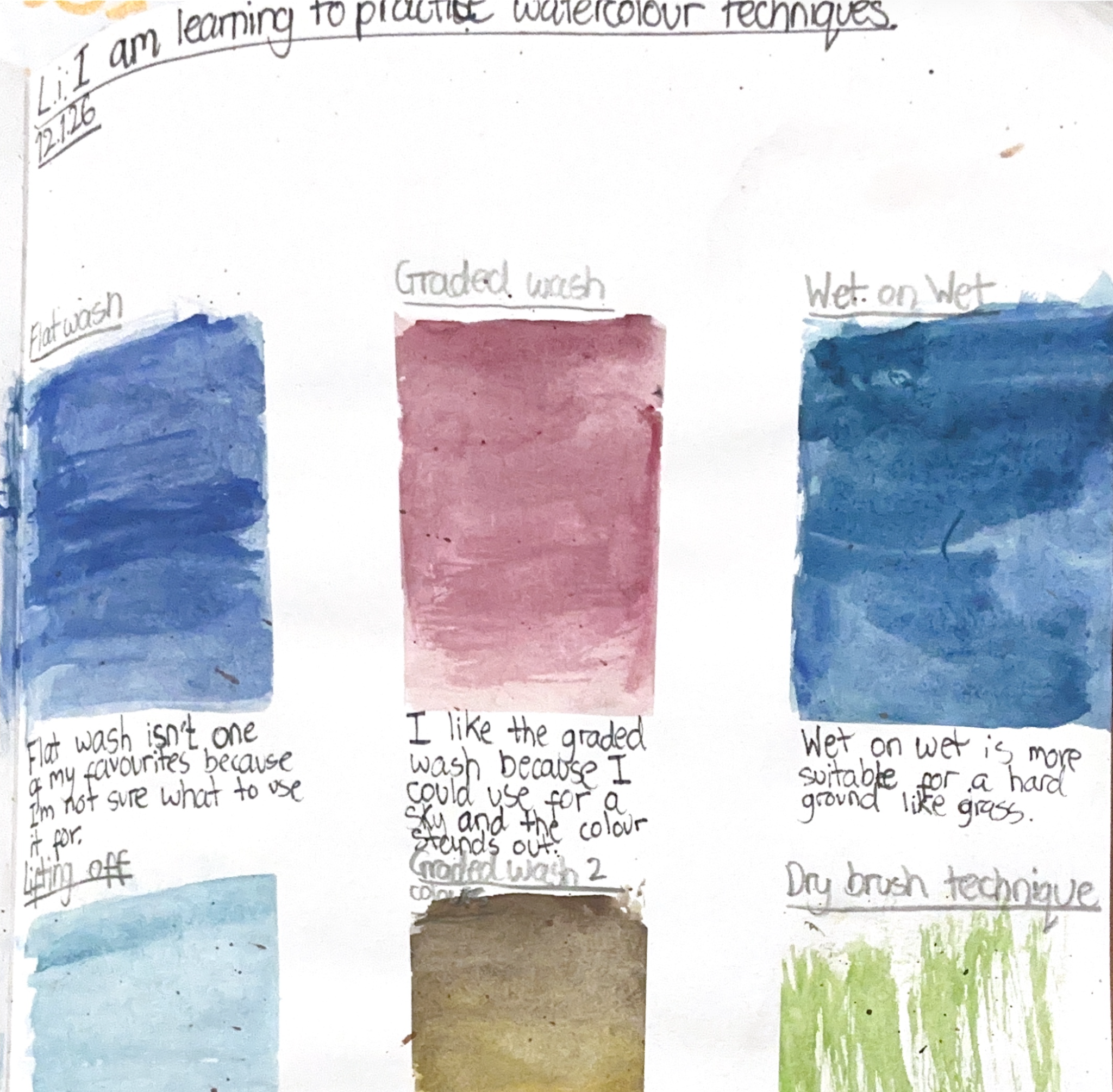The children in Year 2 explored the work of Joseph Turner, with a particular focus on the landscapes that he produced. In this lesson, the children practiced various techniques that were used by Turner, such as dabbing and layering colours to see which ones they would like to use in their final piece.