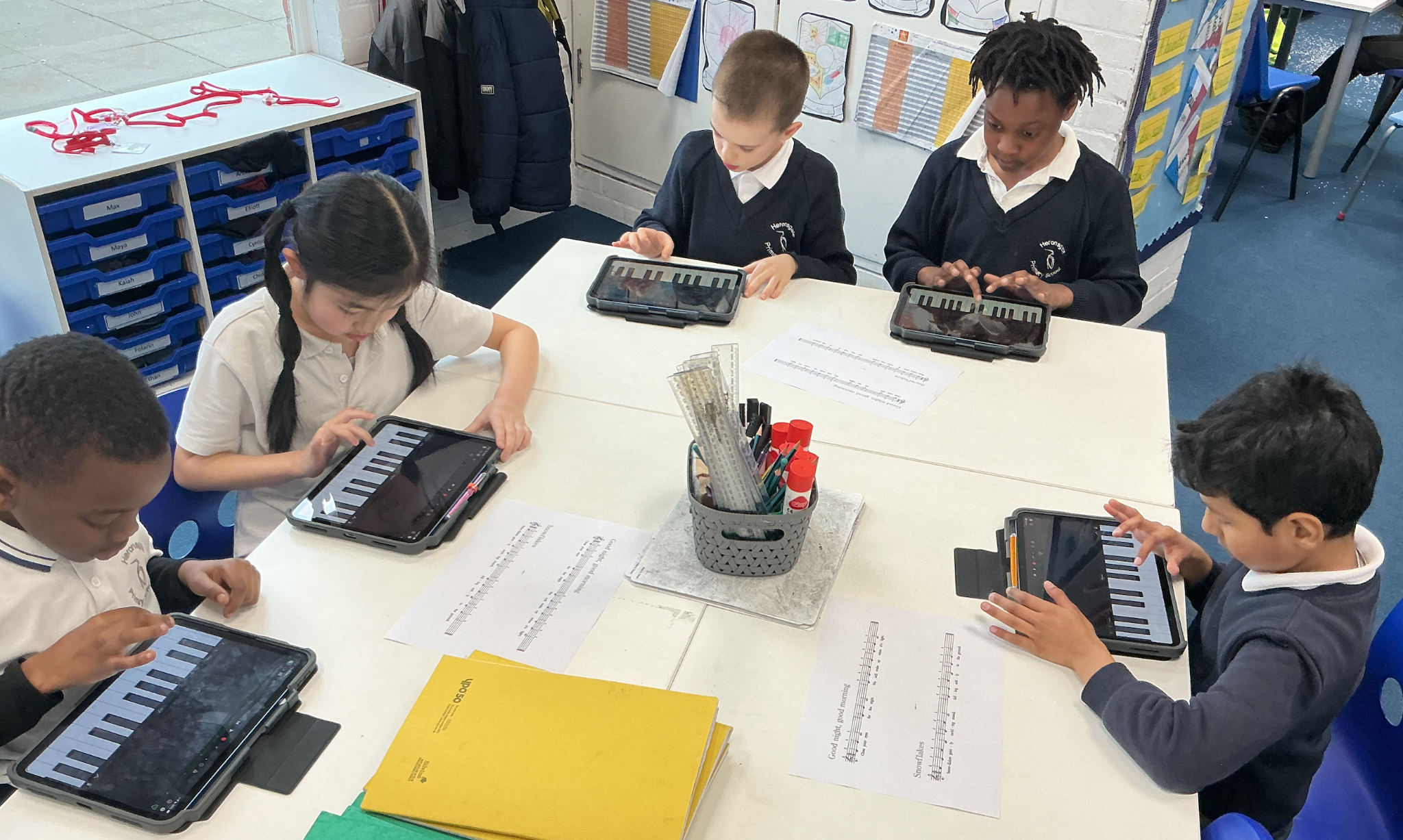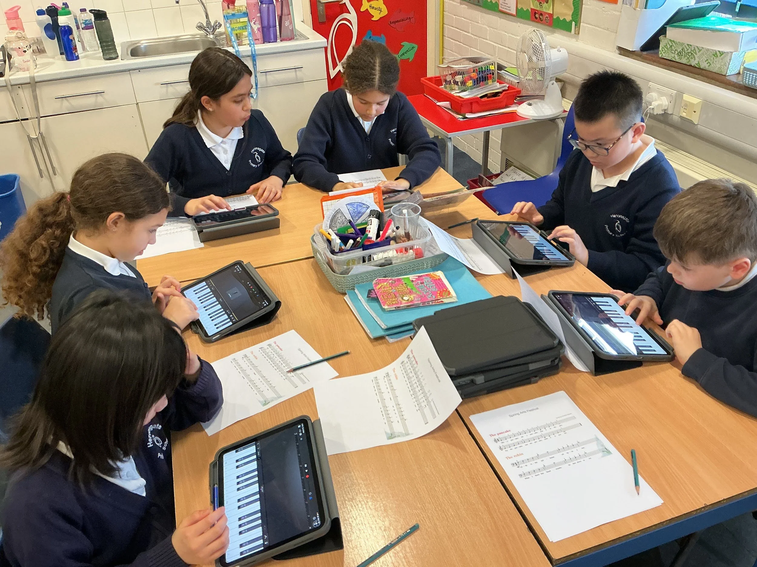 In Year 5, children have enjoyed developing their skills on the keyboard, building on what was taught in Year 4. They have learned to read formal music notation on both the treble and bass clefs, playing with both the right and left hands and becoming confident in understanding both the pitch and duration of the notes they are reading.