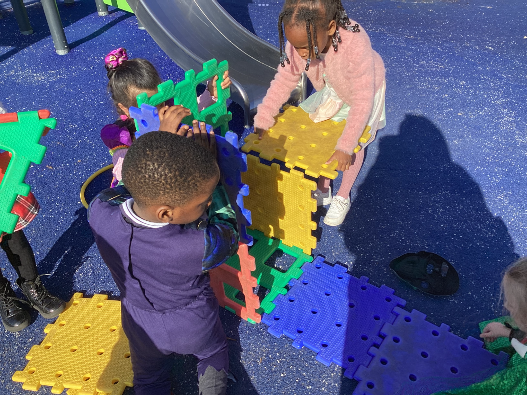 In Reception children used their fine and gross motor skills to build a tower for a person to hide in. Upon building the tower, children realised that it wasn't tall enough for a person to hide inside as it was only one cube in height. The children realised that the tower was not suitable for the user or purpose and therefore evaluated and reflected how they could improve it so a child could fit inside. Children worked as a team to add cubes to make it taller and fit for purpose.